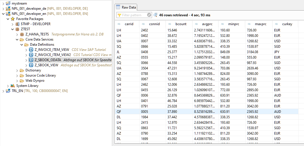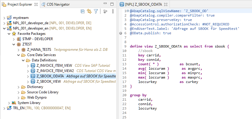 The older way begins with the data definition in Eclipse (the classic SFlight, an aggregation over the table SBOOK)