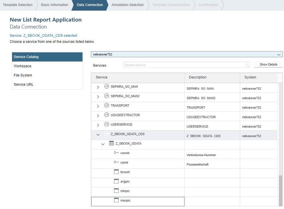The oData connection can be called up immediately if the Netweaver host is set up correctly.
