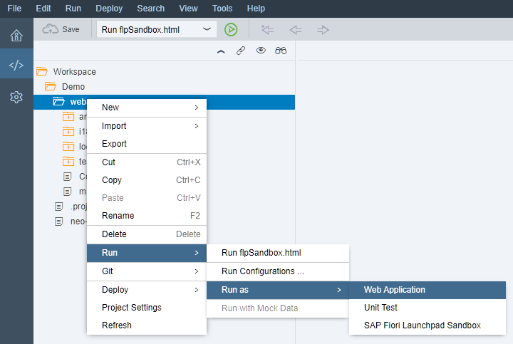 Then the front end is created. I am using the Web-IDE Personal Edition and a template for this. The HANA Web-IDE or VS Code is also possible.
